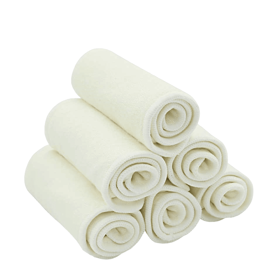 Inserto in bambù Nappiness a quattro strati in spugnetta di bambù, assorbente e di rapida asciugatura, utilizzabili per una maggiore assorbenza in qualunque tipo di pannolino, ideale a contatto con la pelle per le proprietà anallergiche e antibatteriche del bambù.